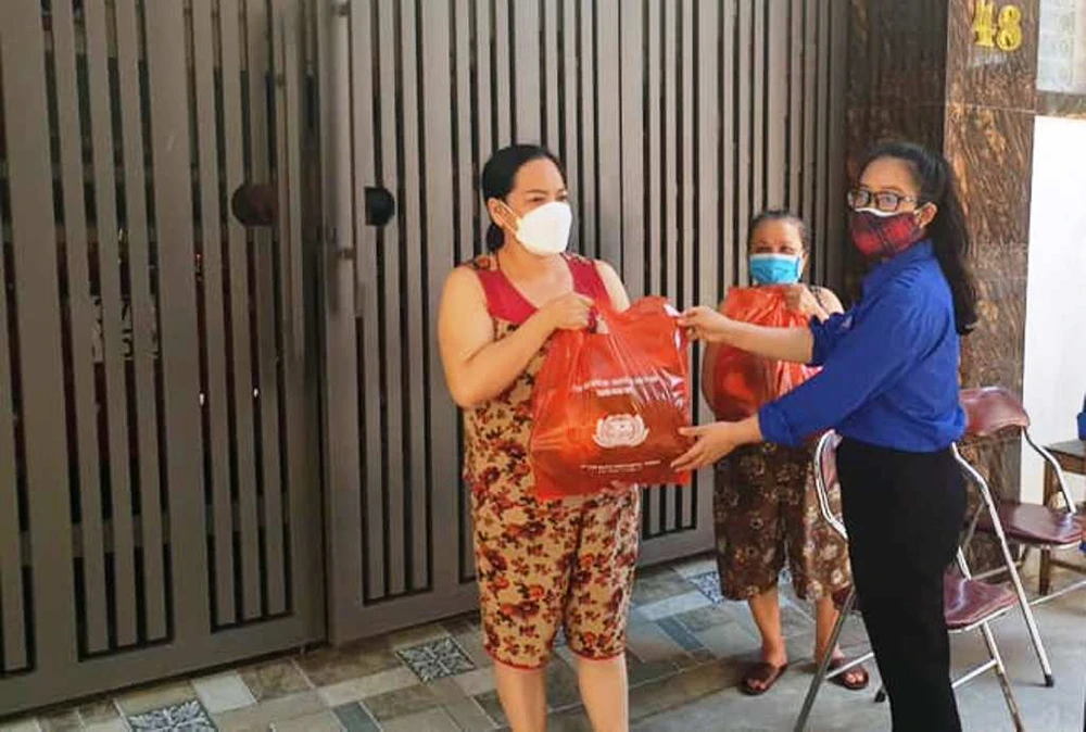 Tại các "gian hàng 0 đồng", các nhu yếu phẩm được lực lượng thanh niên tình nguyện chia phần, đóng thành từng gói đảm bảo cho các hộ gia đình dùng trong 3 - 5 ngày.