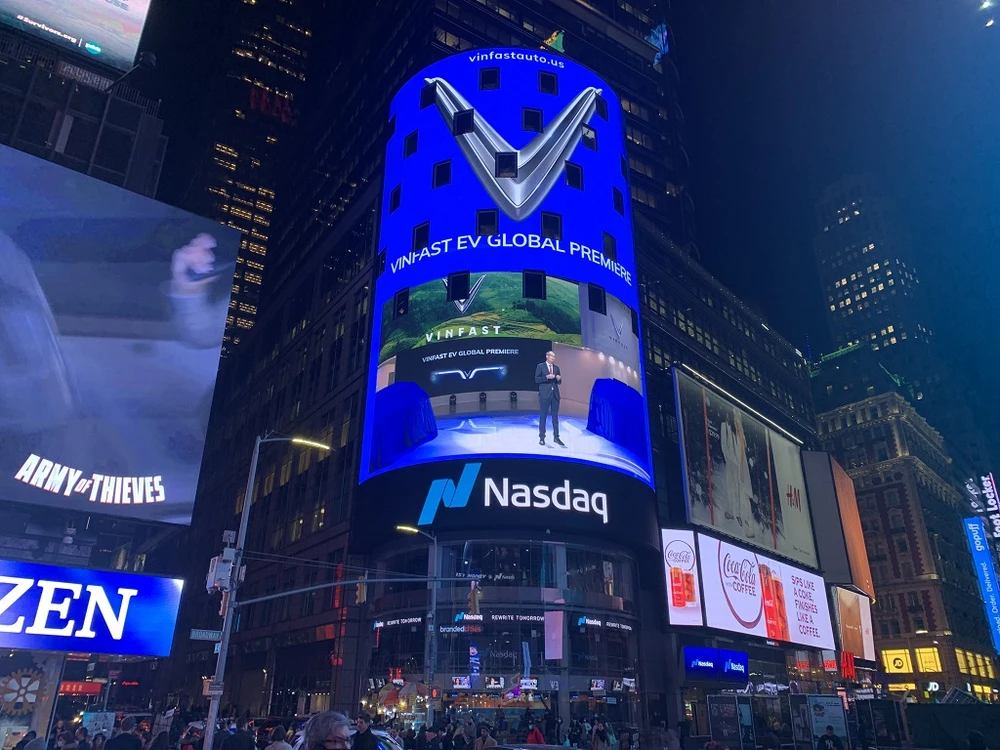 Chiếm vị trí trung tâm và nổi bật của sân khấu là 2 “nhân vật chính” của buổi lễ là mẫu VF e35 và VF e36. Đây cũng là lần đầu tiên 2 mẫu SUV điện “bằng xương bằng thịt” được VinFast giới thiệu tới công chúng toàn cầu. Sự kiện được livestream toàn cầu và đặc biệt, được phát sóng trực tiếp tại Quảng trường Thời đại (Times Square) - nơi được mệnh danh là “giao lộ của thế giới” tại thành phố New York (Mỹ).