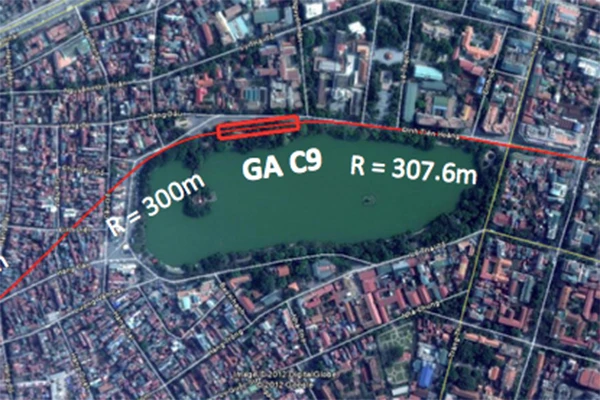 Cụ thể, phương án 1 sẽ nghiên cứu kỹ về tiêu chuẩn kỹ thuật, kỹ thuật công nghệ đối với loại hình đường sắt đô thị ngầm làm cơ sở nghiên cứu điều chỉnh thiết kế, điều chỉnh cục bộ tổng mặt bằng ga ngầm C9 để không nằm vào vùng bảo vệ II của Di tích quốc gia đặc biệt hồ Hoàn Kiếm và đền Ngọc Sơn (ranh giới nhà ga ngầm trùng với ranh giới vùng bảo vệ II).
