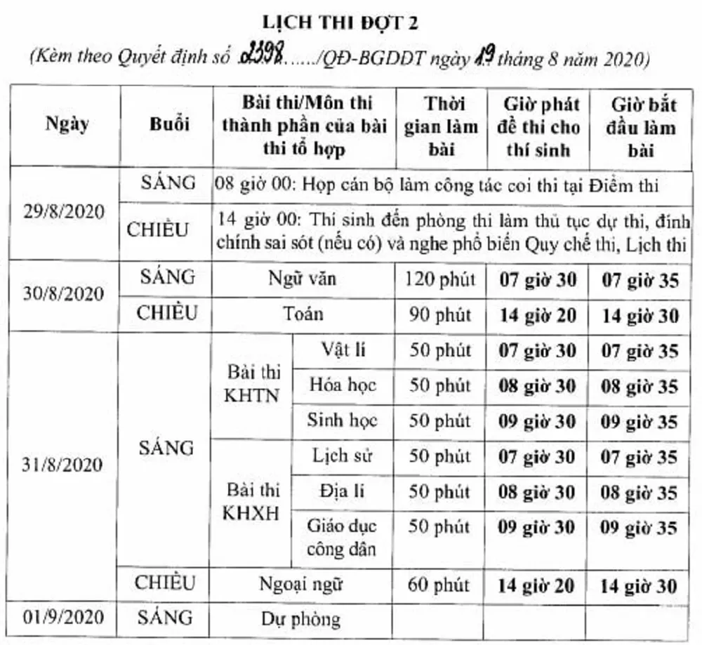 Chi tiết lịch thi tốt nghiệp THPT đợt 2