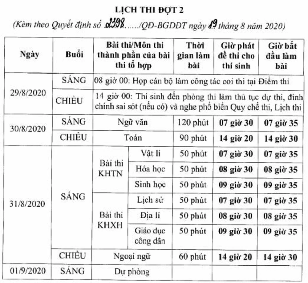 Theo đó, kỳ thi đợt 2 sẽ được tổ chức vào các ngày 29, 30 và 31-8-2020.