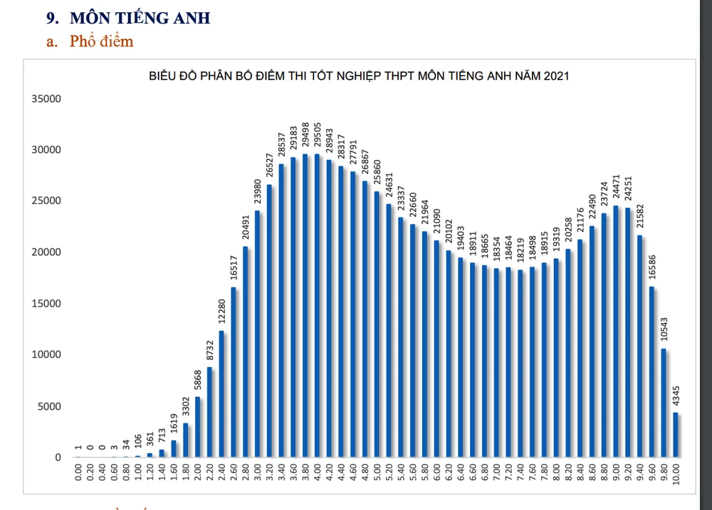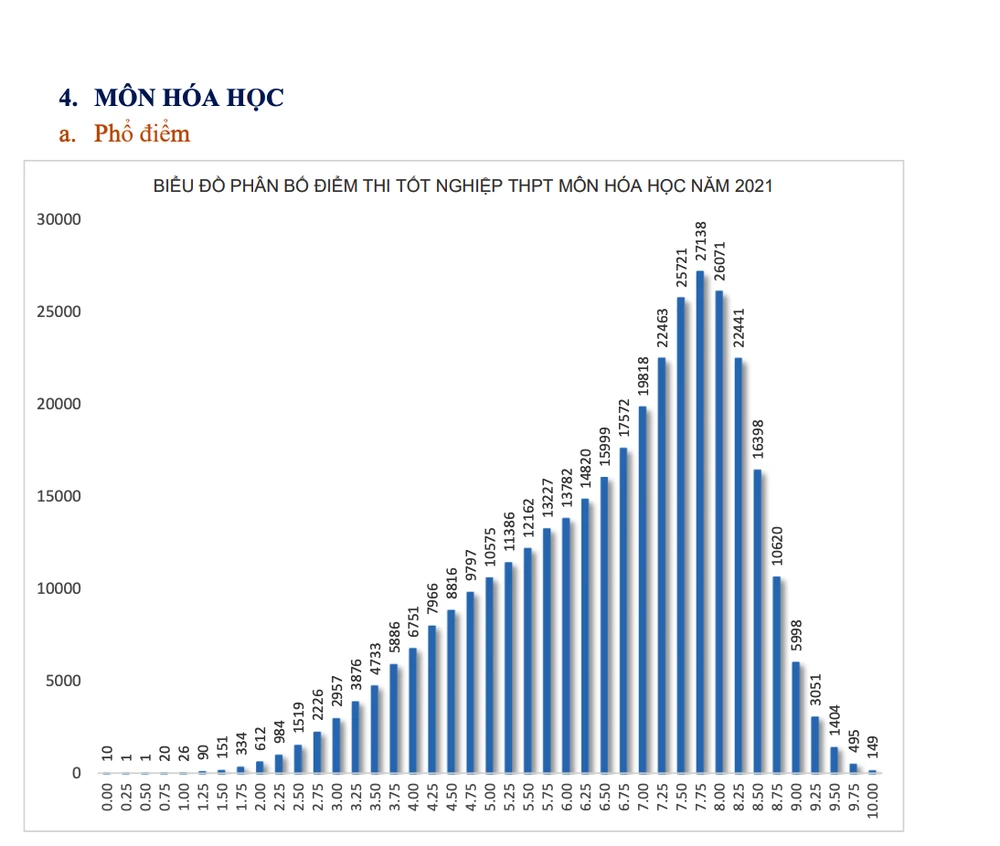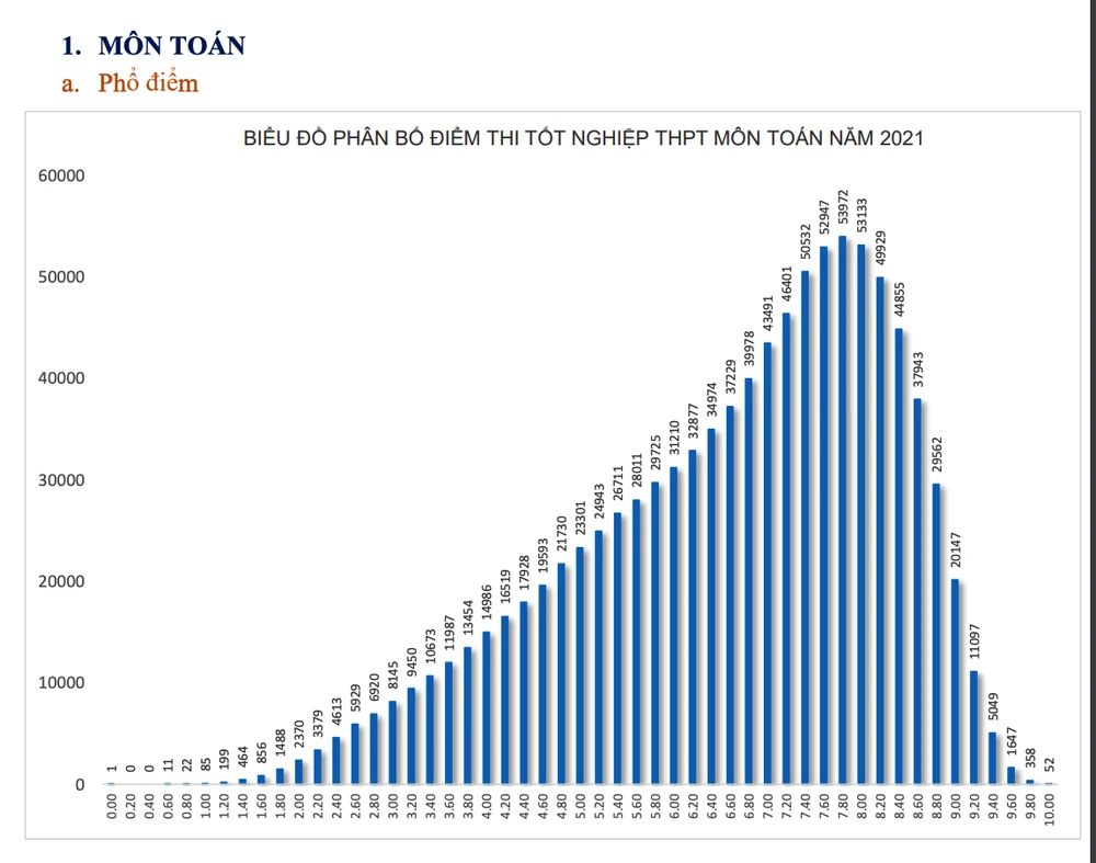 Phổ điểm kỳ thi tốt nghiệp THPT năm nay có 2 môn Lịch Sử và Tiếng Anh lệch trái, tất cả những môn còn lại đều lệch phải.