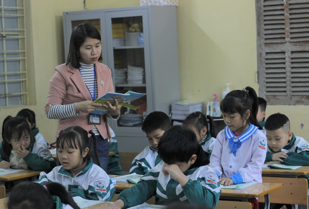Học sinh lớp 1 tại một trường tiểu học ở Hưng Yên (Ảnh minh họa, chụp trước khi có dịch COVID-19)