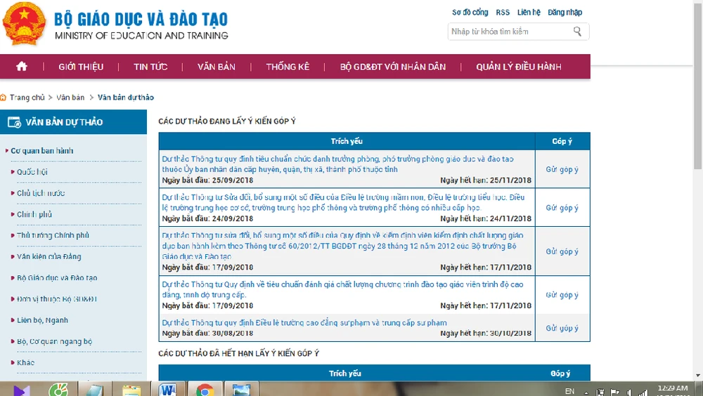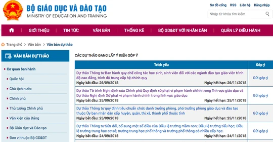 Cụ thể, khoảng 23h ngày 29-10, trên trang thông tin chính thức của bộ Giáo dục và Đào tạo (GD&ĐT) đã rút dự thảo thông tư ban hành quy chế công tác học sinh, sinh viên (HSSV) đối với các ngành đào tạo giáo viên trình độ cao đẳng (CĐ), trình độ trung cấp (TC) hệ chính quy.