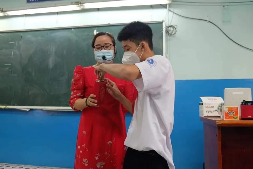 Cô trò trường THCS Lê Quý Đôn trong tiết sinh hoạt lớp sau Tết Nhâm Dần. Ảnh: PTX