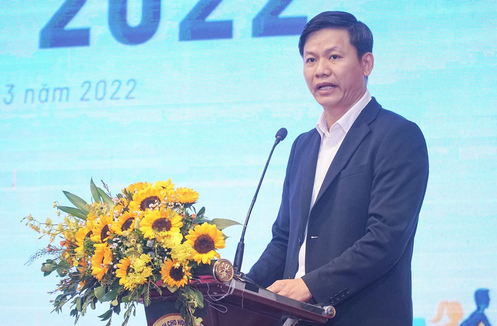 Ông Nguyễn Thanh Đề, Vụ trưởng Vụ Giáo dục Thể chất (Bộ GD&ĐT) phát biểu tại buổi lễ. Ảnh PHI HÙNG