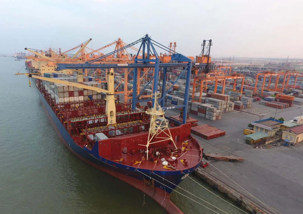 Tàu chở container làm hàng ở cảng Tân Vũ, Hải Phòng.
