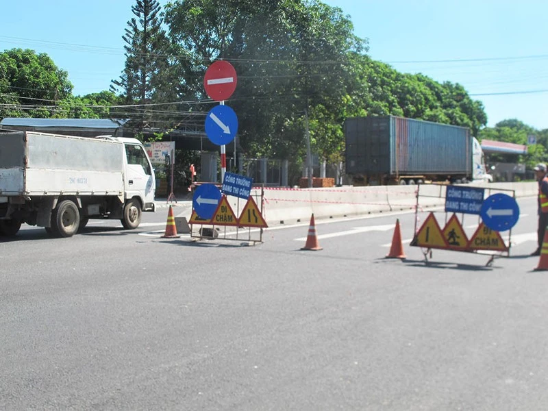 Quốc lộ 1 đoạn qua huyện Cam Lâm (Khánh Hòa) bị hư hỏng, nhà thầu đóng một làn để sửa chữa vào tháng 12-2018. Ảnh: TẤN LỘC