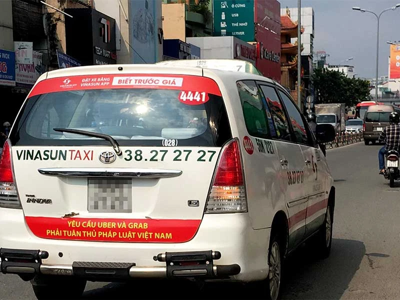 Thời gian qua, mâu thuẫn giữa taxi truyền thống và Grab, Uber rất căng thẳng. Ảnh: HỒNG TRÂM