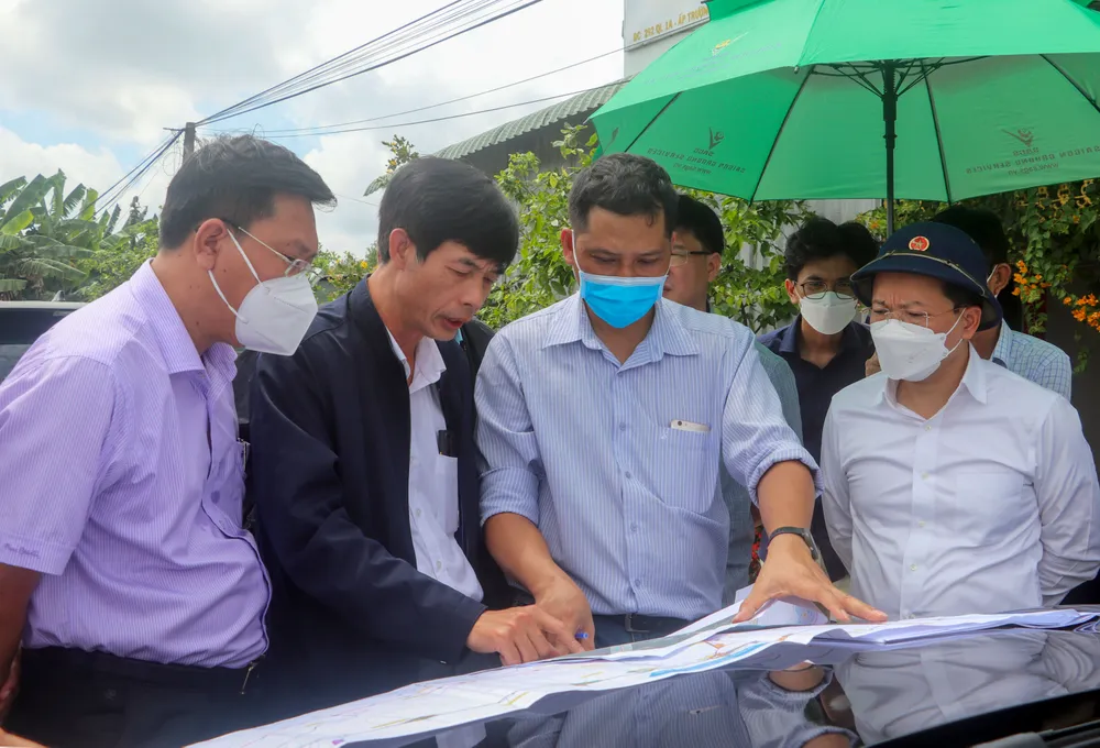 Thứ trưởng Bộ GTVT Nguyễn Duy Lâm khảo sát thực tế một số nút giao trọng điểm của dự án cao tốc Cần Thơ - Cà Mau đoạn qua tỉnh Hậu Giang. Ảnh: CHÂU ANH