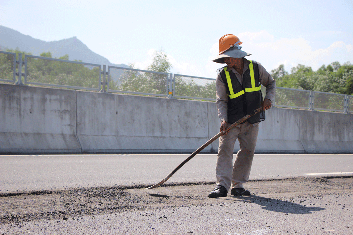 Công nhân sửa chữa trên cao tốc Đà Nẵng - Quảng Ngãi hồi tháng 10-2019. Ảnh: TẤN VIỆT