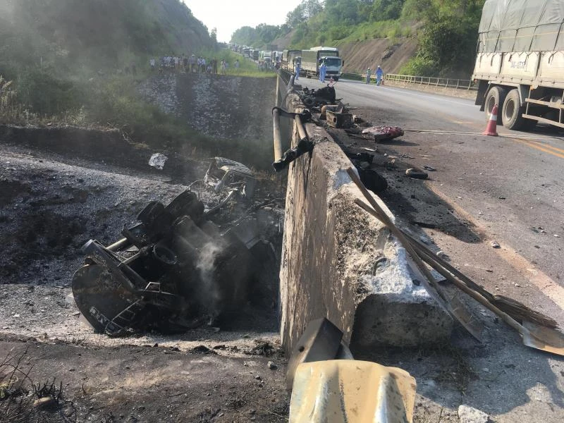 Cầu Ngòi Thủ bị hư hỏng vì một vụ lật xe chở xăng.