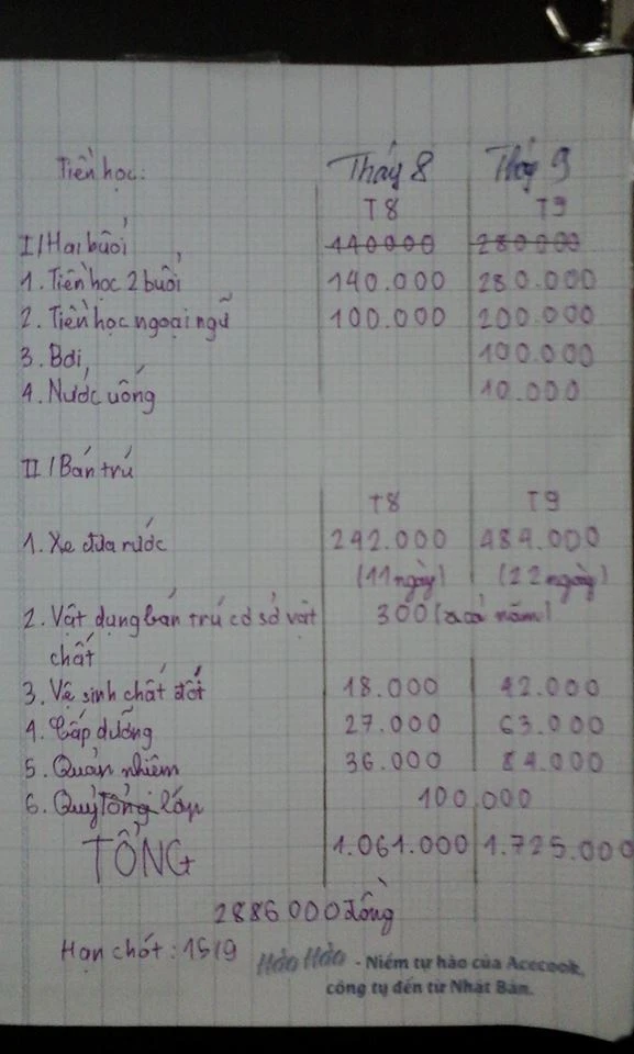 Các khoản thu mới được nhà trường thông báo và học sinh phải viết vào vở mang về cho phụ huynh