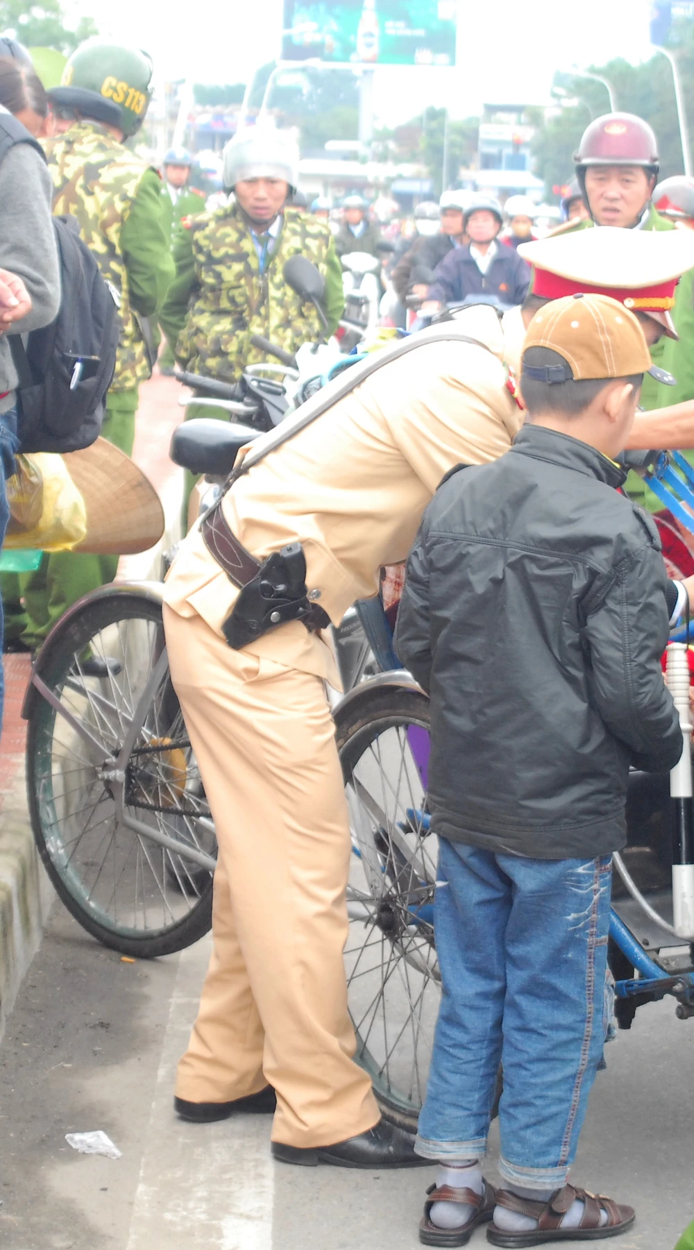 Công an đưa cháu Nguyễn Thanh Sơn về phường chăm sóc. Ảnh: Vạn An