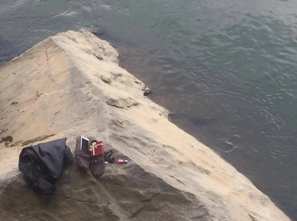 Kiểm tra khu vực nạn nhân nhảy xuống, người dân phát hiện ở hòn đá trên bờ có một bộ quần áo, một đôi giày, một điện thoại và một hộp quà...