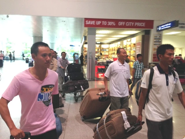 Lao động phải về nước trước thời hạn do tình hình bất ổn tại Libya tại sân bay quốc tế Tân Sơn Nhất, trưa 9-8. Ảnh: P.ĐIỀN