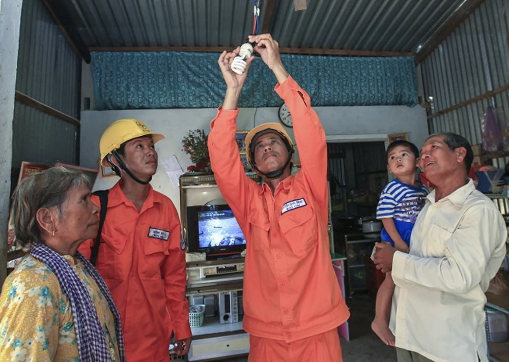 Công nhân điện lực đến tận nhà dân sửa chữa sự cố