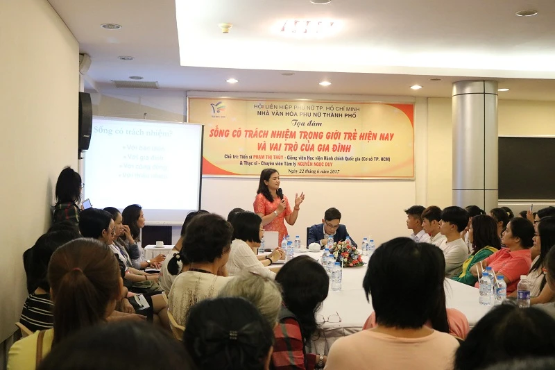Nhiều câu hỏi xoay quanh vấn đề trách nhiệm của giới trẻ, của cả ông bà, cha mẹ được đưa ra thảo luận sôi nổi. Rất đông các bạn trẻ và cả phụ huynh đến dự đã thẳng thắn bày tỏ ý kiến của mình để hai thế hệ có thể hiểu nhau hơn.