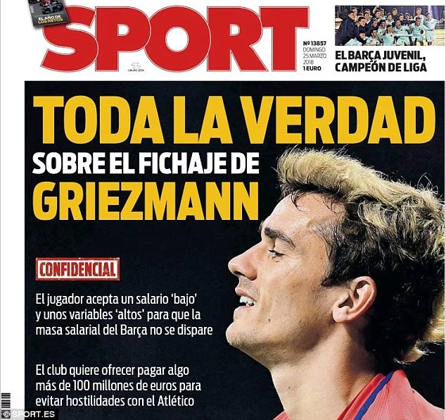 Tờ Sport cũng thông tin thêm, Barcelona không muốn chi lương quá nhiều cho Griezmann bởi phí chuyển nhượng dành cho Griezmann là rất lớn, lên đến 100 triệu euro (khoảng 87,4 triệu bảng Anh).