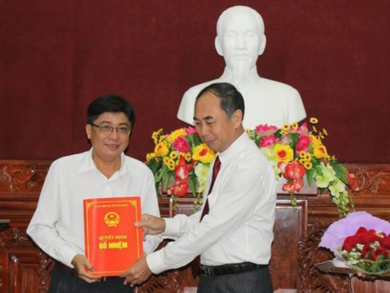 Ông Nguyễn Tiến Dũng, Phó Chủ tịch UBND tỉnh Bình Phước, trao quyết định bổ nhiệm cho ông Bùi Quốc Khánh. Ảnh: TTO
