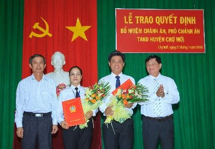Nhiệm kỳ bổ nhiệm các ông, bà giữ chức vụ nêu trên là năm năm kể từ ngày ký quyết định. Đồng thời TAND tỉnh An Giang cũng trao quyết định của chánh án TAND Tối cao về việc kéo dài thời gian giữ chức vụ phó chánh án TAND huyện Chợ Mới đối với bà Lê Thị Chung, sinh ngày 2-3-1962, kể từ ngày 2-8-2016 cho đến tuổi nghỉ hưu theo quy định.