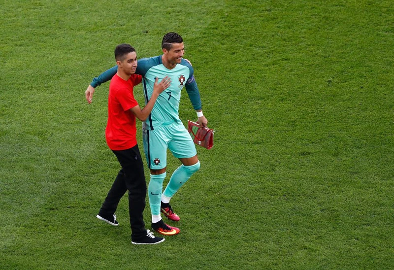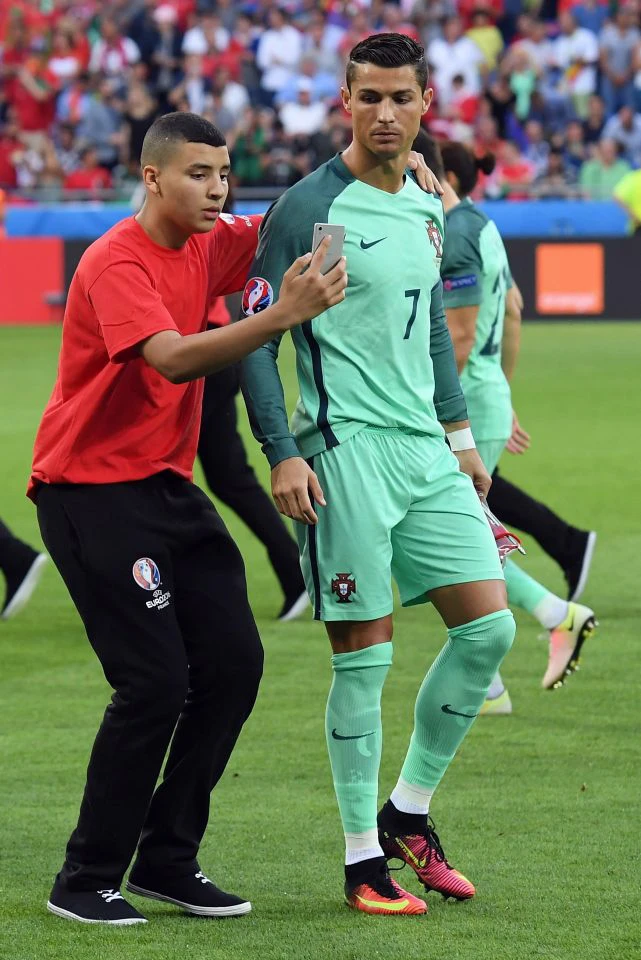 Trước trận đấu bắt đầu, một cầu thủ trẻ thuộc đội cầm cờ nghi thức đã bỏ nhiệm vụ để chạy đến tự chụp ảnh cùng thần tượng của mình. Siêu sao đội trưởng Bồ Đào Nha khá bất ngờ với hành động này của cậu bé vì chỉ sau đó ít phút là trận đấu bắt đầu.