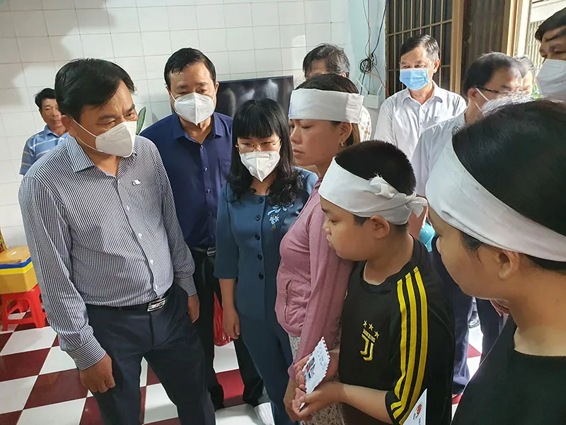 Đoàn công tác cũng đến thăm hỏi, động viên các gia đình có người bị tử vong do thiên tai vừa qua.