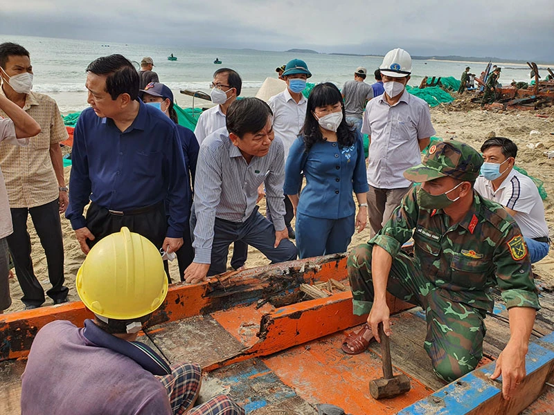 Thứ trưởng Nguyễn Hoàng Hiệp cùng đoàn công tác Ban Chỉ đạo quốc gia về phòng chống thiên tai đã đi thực tế kiểm tra thiệt hại về nuôi, đánh bắt thủy sản do sóng lớn, gió lốc gây ra tại xã An Hòa Hải, huyện Tuy An, tỉnh Phú Yên.