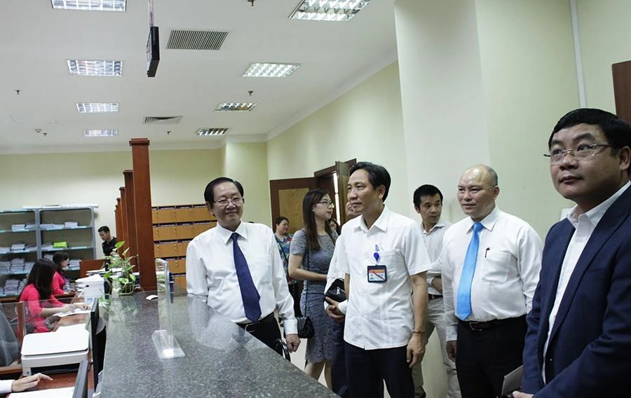 Bộ trưởng Lê Vĩnh Tân tham quan bộ phận một cửa.