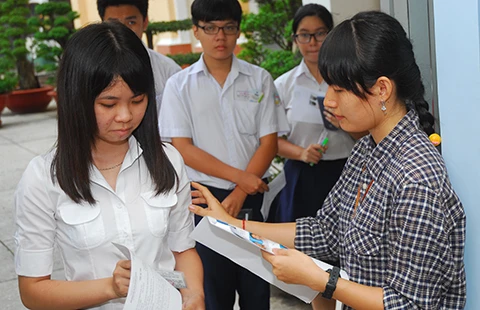 Các thí sinh chuẩn bị vào phòng thi trong kỳ thi THPT quốc gia 2015. Ảnh: HTD