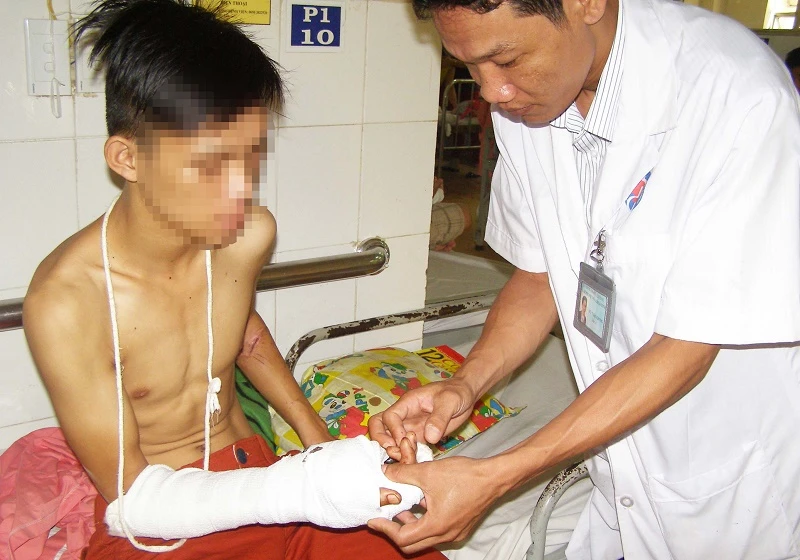BS Trung cho biết nếu trễ thêm nửa tiếng thì phần bàn tay đứt lìa sẽ bị hoại tử, khi đó không thể nối lại cho bệnh nhân được nữa.