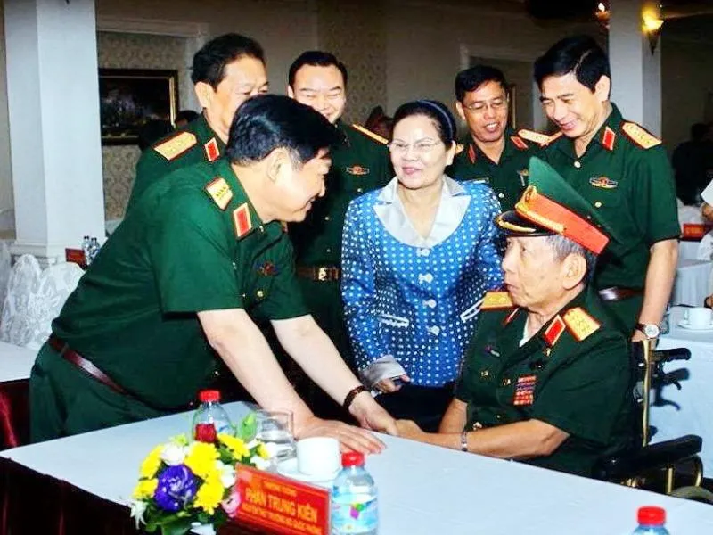 Đại tướng Ngô Xuân Lịch, Bộ trưởng Bộ Quốc phòng, đang thăm hỏi các tướng lĩnh quân đội đã nghỉ hưu.
