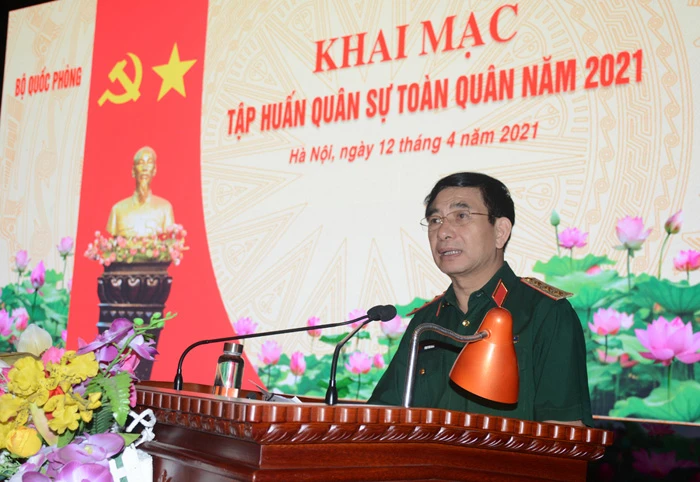 Thượng tướng Phan Văn Giang phát biểu khai mạc tập huấn quân sự toàn quân năm 2021. Ảnh: MOD