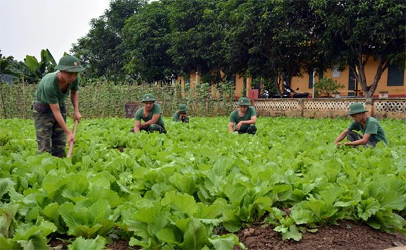 Bộ đội Tiểu đoàn 1, Lữ đoàn 406 chăm sóc vườn rau xanh nhằm cải thiện bữa ăn. Ảnh: QĐND
