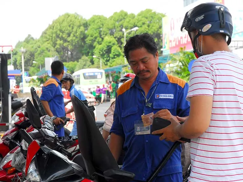 Hiện nay Petrolimex chiếm 48% thị phần bán lẻ xăng dầu tại Việt Nam. Trong ảnh: Khách hàng đang mua xăng. Ảnh: HTD