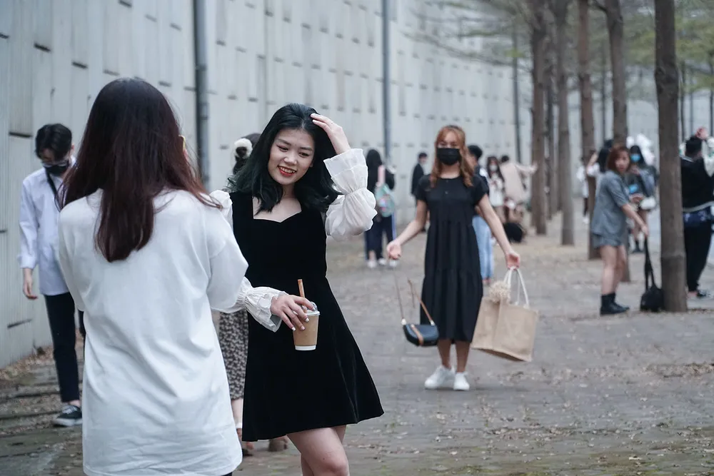 Bạn Hoàng Thị Khánh Huyền (sinh viên Học viện Ngân hàng) cho biết, khi đi qua đây thấy nhiều người tạo dạng, khung cảnh cũng khá thơ mộng, nên ngay lập tức Huyền phải dừng chân để chụp một tấm ảnh với con đường đầy lá vàng như phim Hàn Quốc.