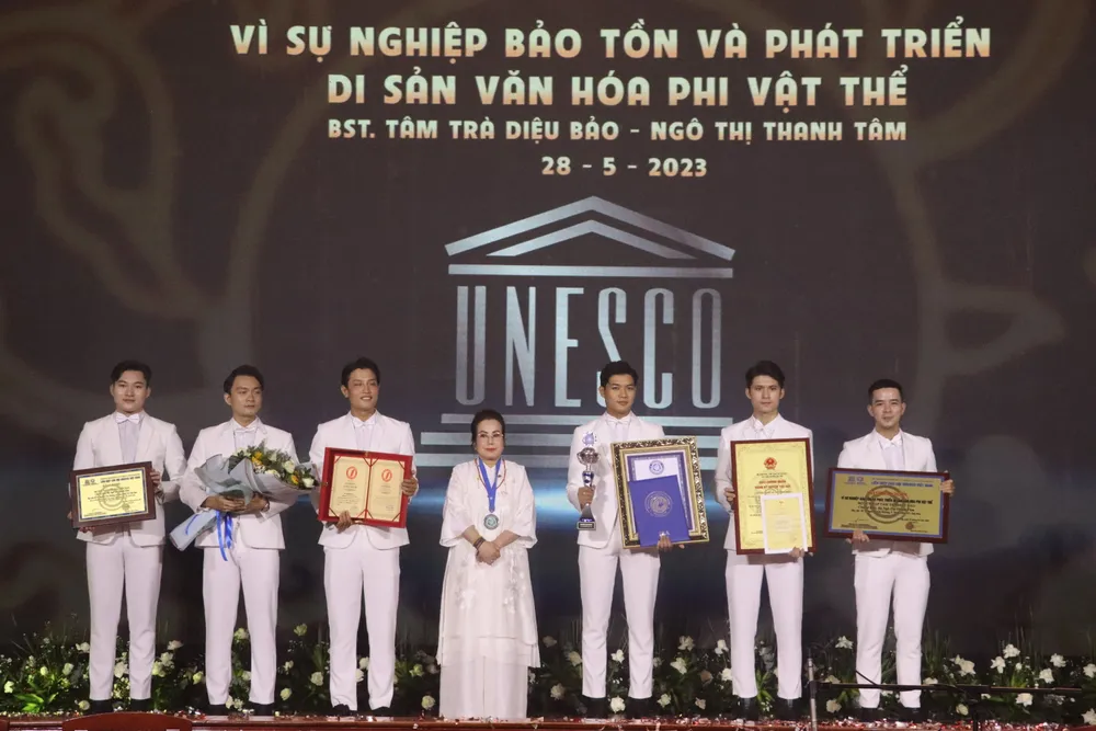 Dịp này, Hiệp hội Kỷ lục thế giới (có trụ sở tại Hong Kong) cũng trao tặng bằng Kỷ lục thế giới cho bộ sưu tập "Tâm trà diệu bảo" của bà Tâm.
