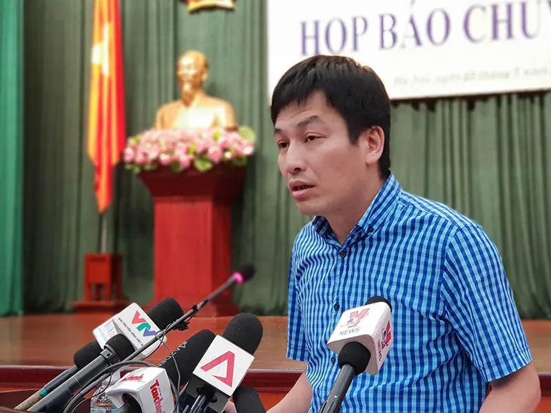 Ông Lê Tuấn Anh, Phó Vụ trưởng Vụ Đầu tư (Bộ Tài chính), trả lời báo chí tại buổi họp báo. Ảnh: CHÂN LUẬN