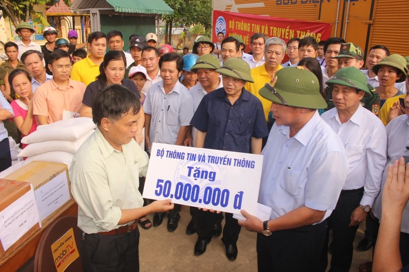 Bộ TT&TT đã trao 30 tấn gạo, 150 triệu đồng hỗ trợ cho việc cứu nạn vùng lũ và 500 triệu đồng phục vụ cho công tác an sinh xã hội, gần 3.000 đầu sách giáo khoa từ lớp 1 đến lớp 9 và thuốc uống cho người dân tại tỉnh Hà Tĩnh.