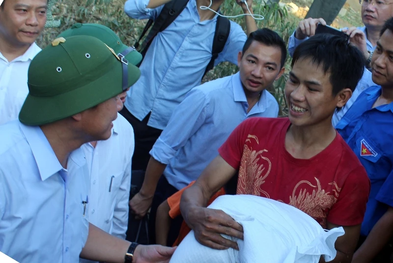 Người dân rất vui mừng vì nhận được sự quan tâm sau lũ lớn.