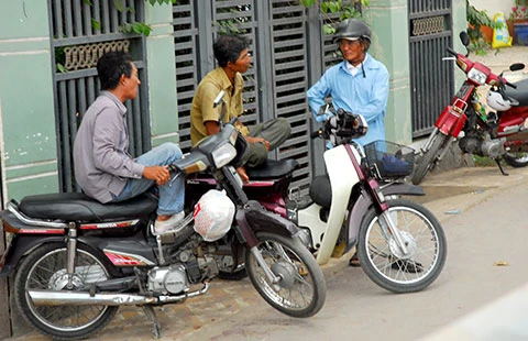 Những người hành nghề xe ôm sẽ đỡ một phần chi phí khi dừng việc thu phí xe máy. Ảnh: HTD