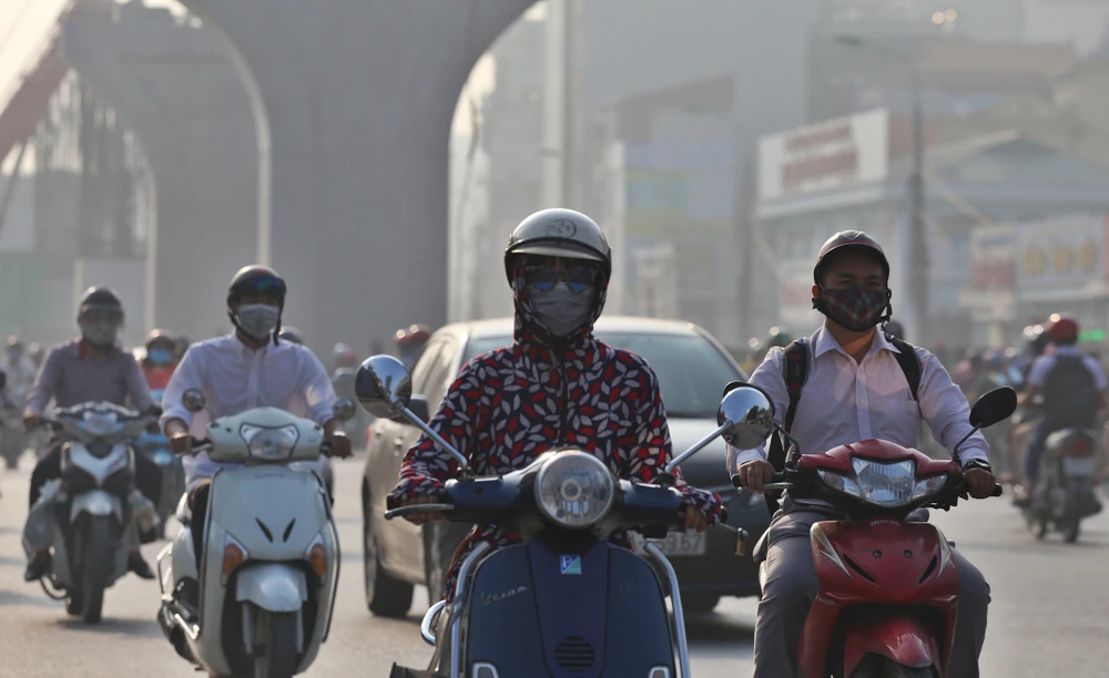 Nồng độ bụi trong không khí gia tăng khiến đường phố Hà Nội lúc nào cũng mù mịt trong những ngày qua.