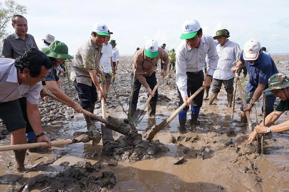 Bộ TN&MT phối hợp với UBND tỉnh Bạc Liêu phát động trồng rừng ngập mặn tại ven biển Bạc Liêu sáng 31-5.