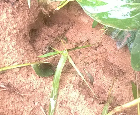 Vết chân của bò tót khá to, in sâu xuống đất.