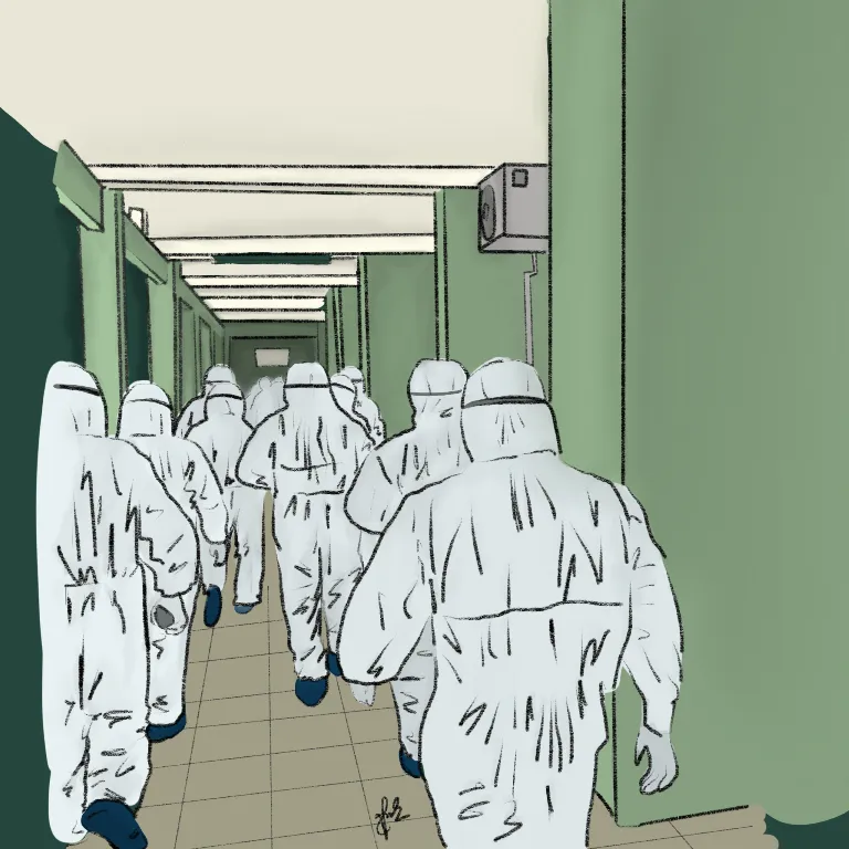 Những chiến sĩ áo trắng tiến vào tâm dịch Bệnh viện Đà Nẵng.