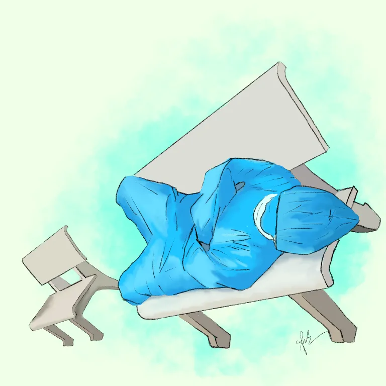 Phút ngã lưng trên ghế đá của các y bác sĩ tuyến đầu chống dịch.