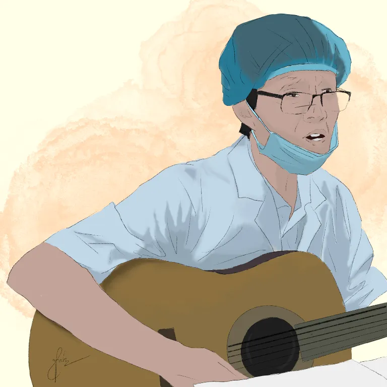 Bác sĩ Nguyễn Quý Thiện, Khoa nội tiêu hóa - Bệnh viện C Đà Nẵng đàn hát trong giờ giải lao.