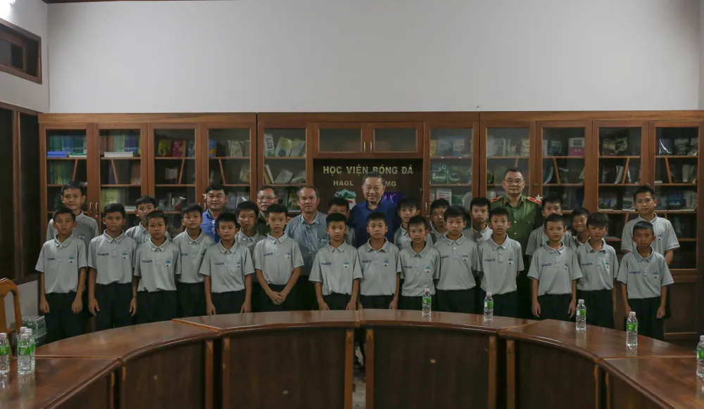 Bộ trưởng Tô Lâm thăm hỏi các cầu thủ nhí của Học viện HA Gia Lai JMG...