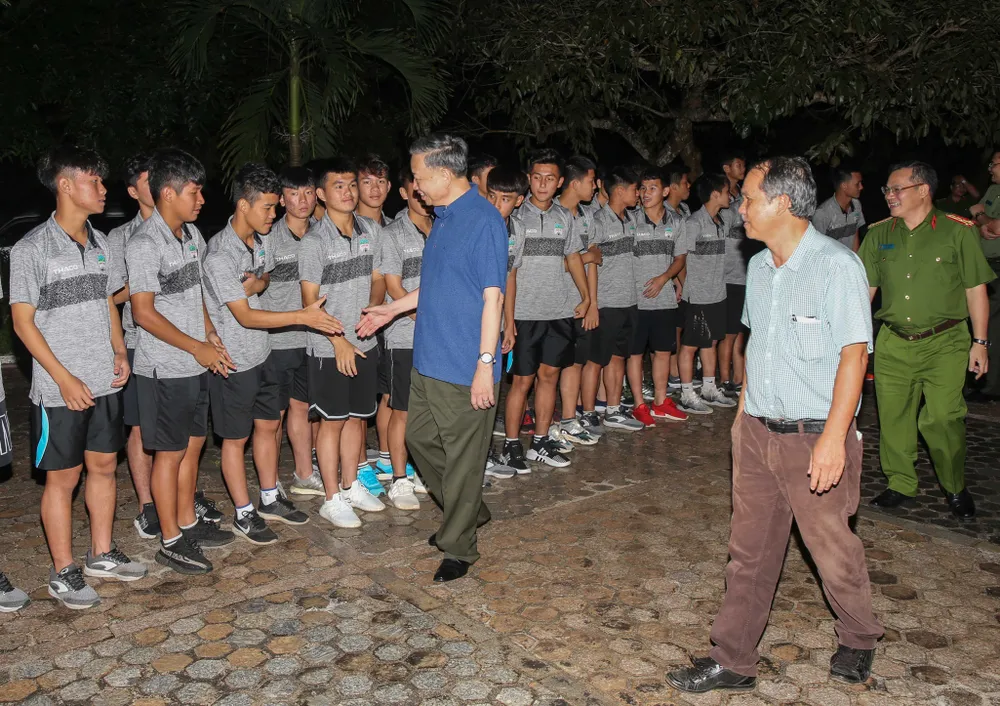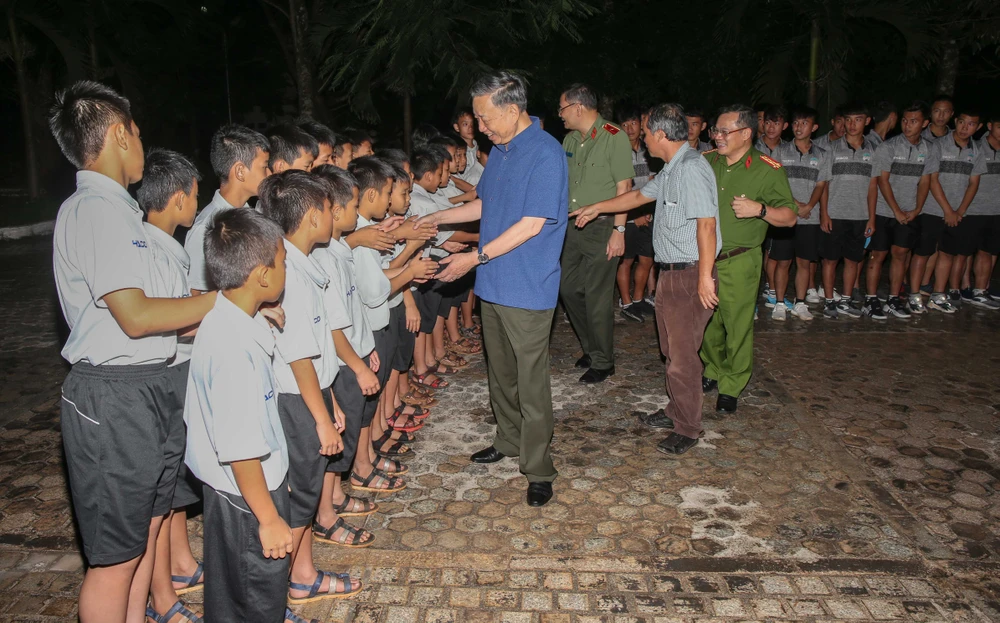 Bộ trưởng Tô Lâm đã động viên, khuyến khích các học viên cố gắng tập luyện thật tốt, học tập văn hóa, ngoại ngữ, kỹ năng sống... đặc biệt rèn luyện ý chí thật kiên cường, vững vàng để cống hiến cho đội tuyển, góp phần mang lại vinh quang cho Tổ quốc.