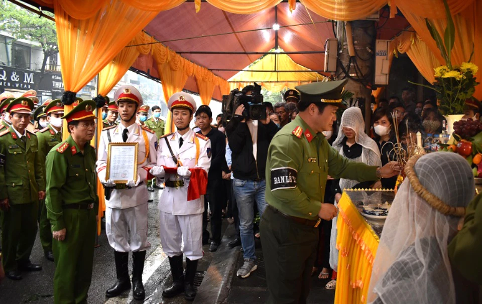 Lễ tang Thiếu tá Đinh Văn Quý được tổ chức theo nghi lễ của lực lượng Công an nhân dân. Ảnh: CANB